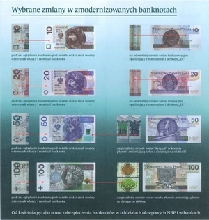 Narodowy Bank Polski wprowadził dziś do obiegu pierwsze banknoty ze zmodernizowanymi zabezpieczeniami. Zmienione banknoty o nominałach 10, 20, 50 i 100 zł będą zastępowały zniszczone lub uszkodzone banknoty wycofywane z obiegu w ramach standardowych operacji zasilających banki komercyjne w gotówkę. Wszystkie obecnie używane banknoty bezterminowo pozostają prawnym środkiem płatniczym.