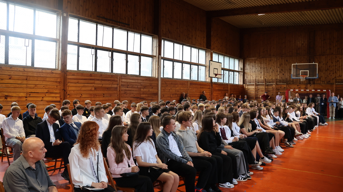 Dzisiaj rano sala sportowa w „Elektroniku” wypełniona była uczniami klas pierwszych. Ci młodzi ludzi rozpoczynają kolejny etap w swoim życiu. Wśród nich byli uczniowie, którzy wybrali z oferty szkoły nowo otwartą klasę o profilu mundurowym.
