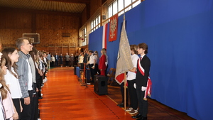 Uroczysty apel rozpoczął się wprowadzeniem sztandaru szkoły oraz odśpiewaniem hymnu. Następnie głos zabrał dyrektor szkoły Wojciech Psik, który przywitał wszystkich zebranych. W swoim przemówieniu podkreślił znaczenie wartości takich jak patriotyzm, odpowiedzialność i zaangażowanie.