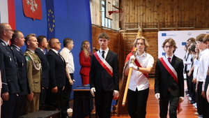 Nowy rok szkolny w Zespole Szkół Elektronicznych i Ogólnokształcących im. prof. Janusza Groszkowskiego rozpoczęty, a wraz z nim nowa perspektywa dla uczniów. Dzisiaj naukę rozpoczęli uczniowie oddziału o profilu mundurowym. Program szkolenia będzie realizowany na podstawie rozporządzenia Ministra Spraw Wewnętrznych i Administracji z dnia 25 lutego 2025 r. w sprawie szkolenia w oddziale o profilu mundurowym. W uroczystościach inauguracji nowego roku szkolnego wzięli udział przedstawiciele służb mundurowych. Komendę Miejską Policji w Przemyślu reprezentował Zastępca Komendanta Miejskiego Policji w Przemyślu mł. insp. Dariusz Dźwierzyński.