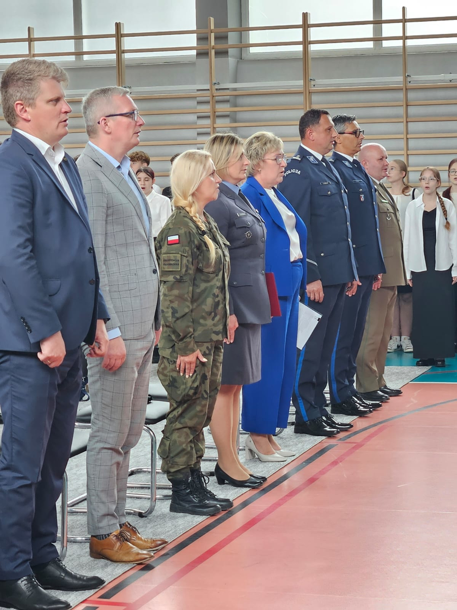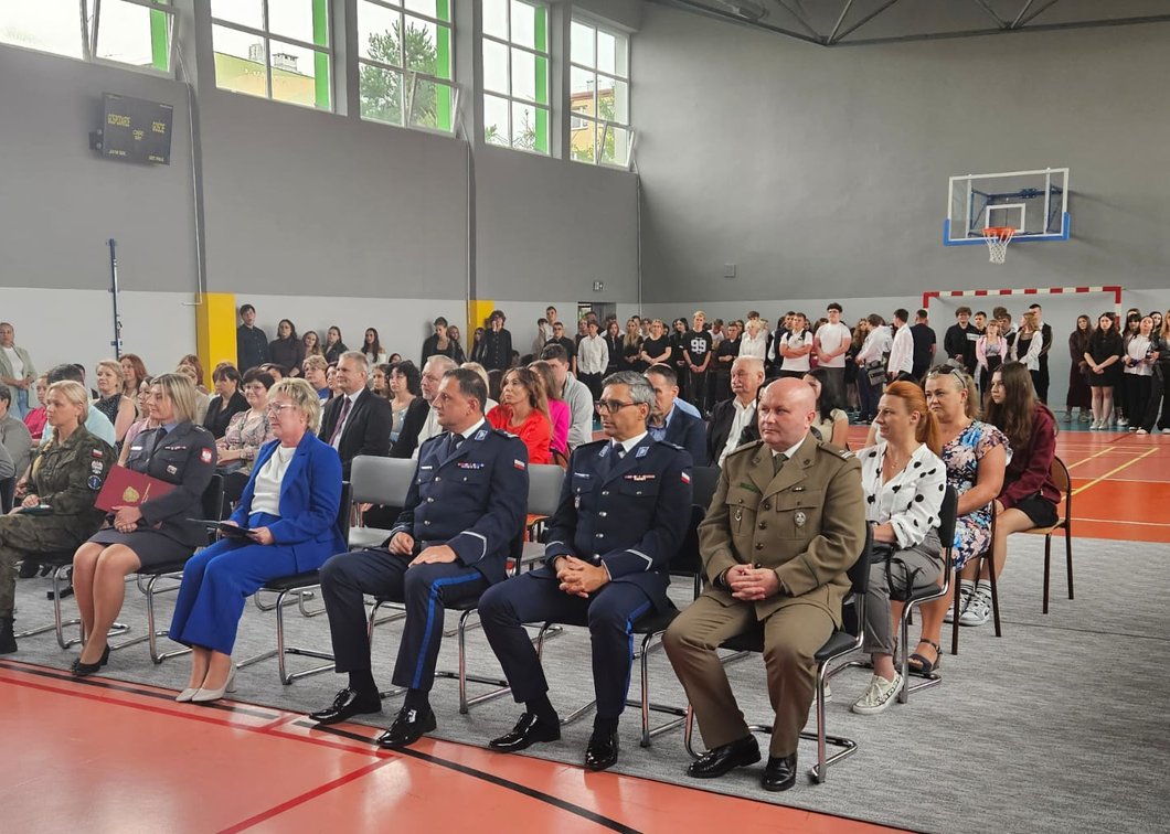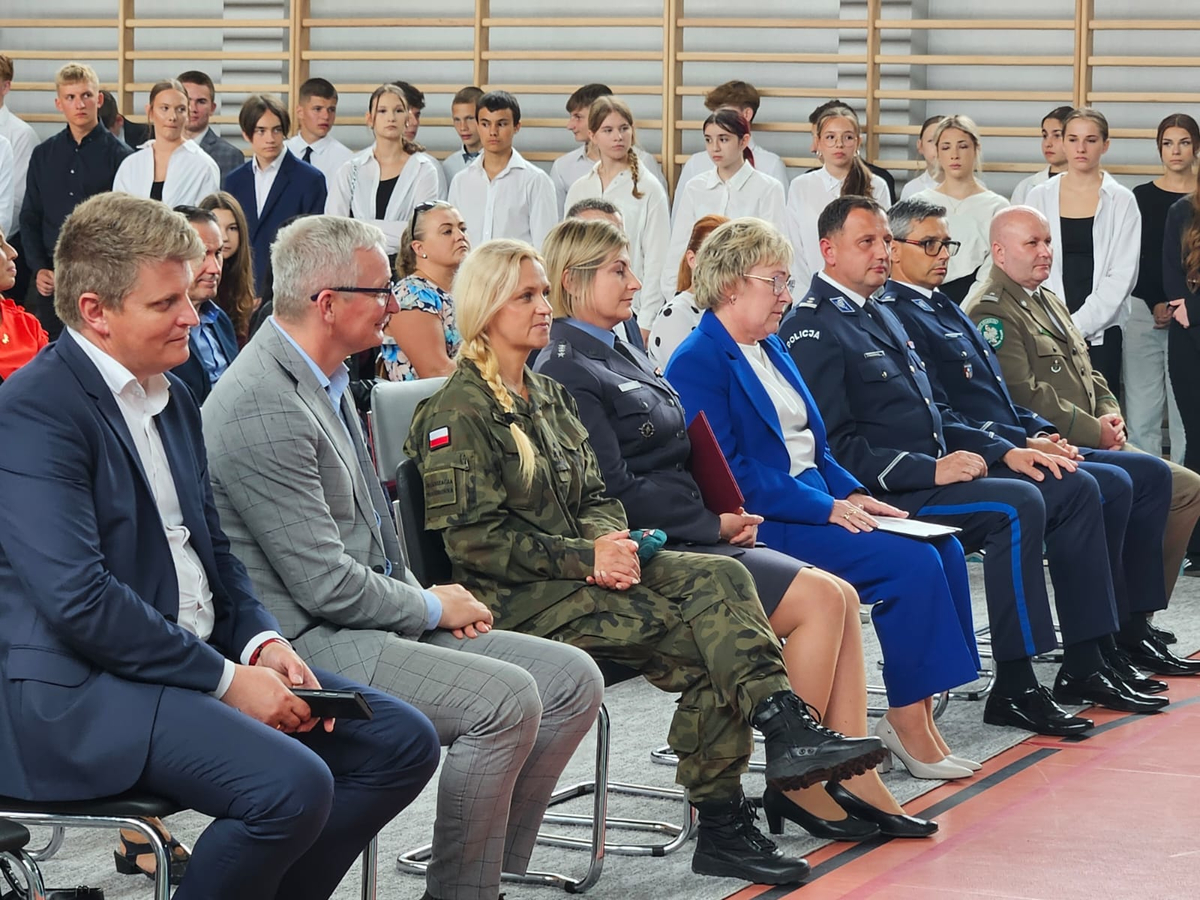 Wczoraj w IV Liceum Ogólnokształcącym działającym przy Zespole Szkół nr 5 w Sanoku odbyło się uroczyste rozpoczęcie roku szkolnego oddziału o profilu mundurowym. To pierwszy rocznik młodzieży, która swoje plany zawodowe wiąże ze służbą w Policji lub Straży Granicznej. W uroczystości wzięli udział Komendant Powiatowy Policji w Sanoku mł. insp. Artur Kowali wraz z Zastępcą Komendanta Powiatowego Policji w Sanoku podinsp. Zbigniewem Kłudką.